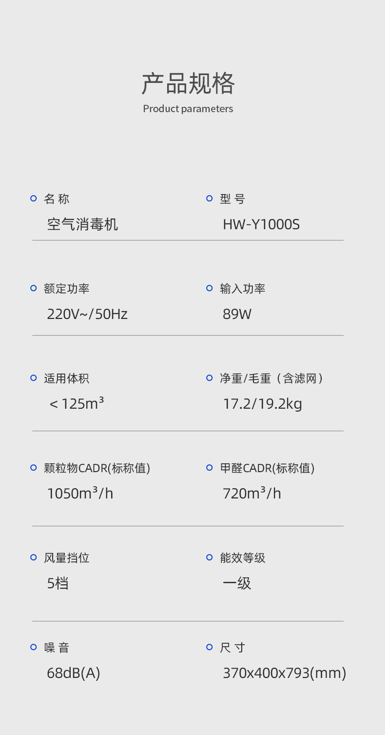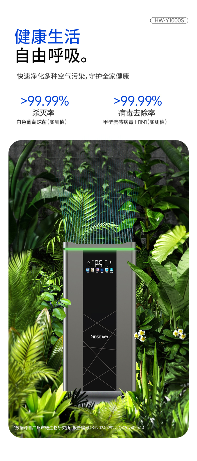 赫为空气除醛消毒净化一体机 HW-Y1000S